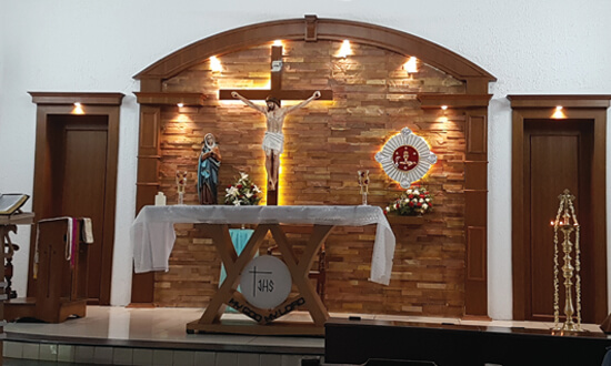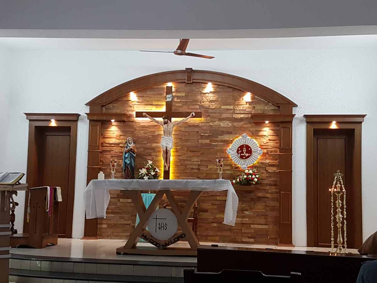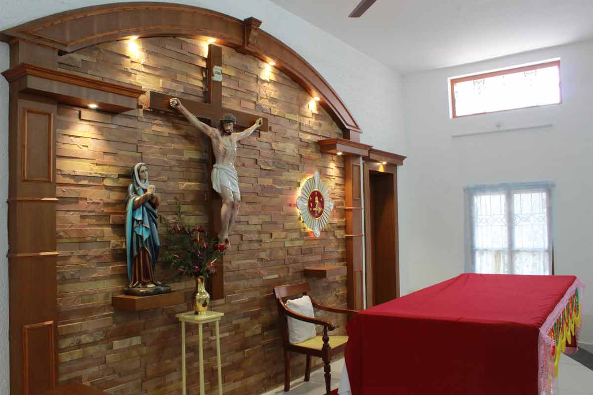 The altar of the Convent Chapel was redesigned. The Tabernacle was kept in a prominent position. As in the convent traditions, the crucified Christ along with the statue of the Blessed Mary to the left of the Christ was positioned in the wall with utmost reverence. The indirect lighting at the appropriate locations added the required ambience to the atmosphere of prayers of the nuns.