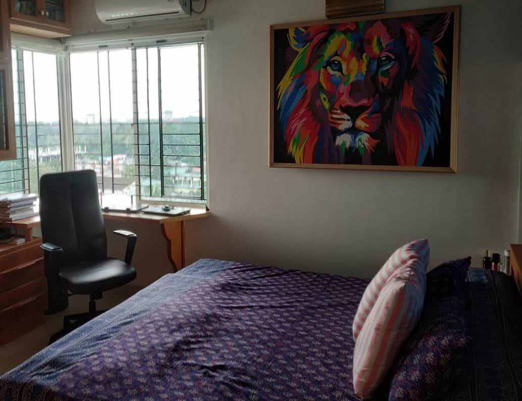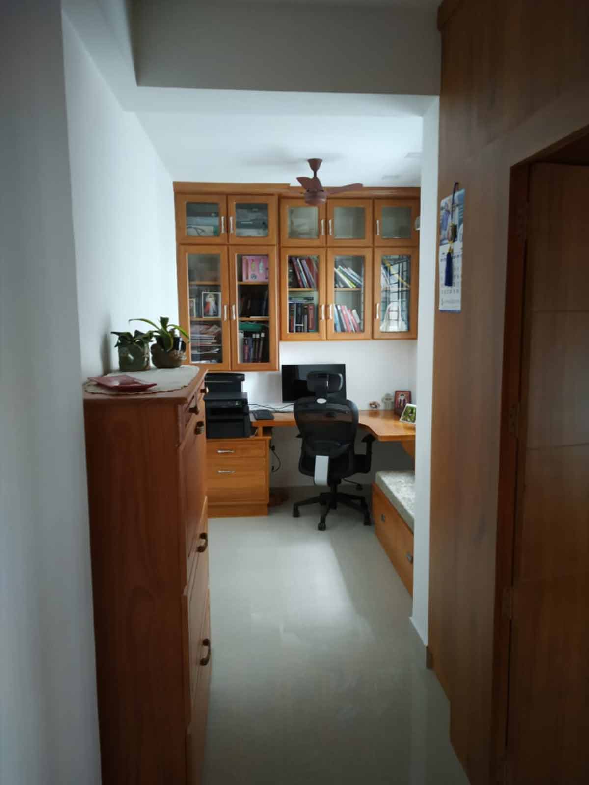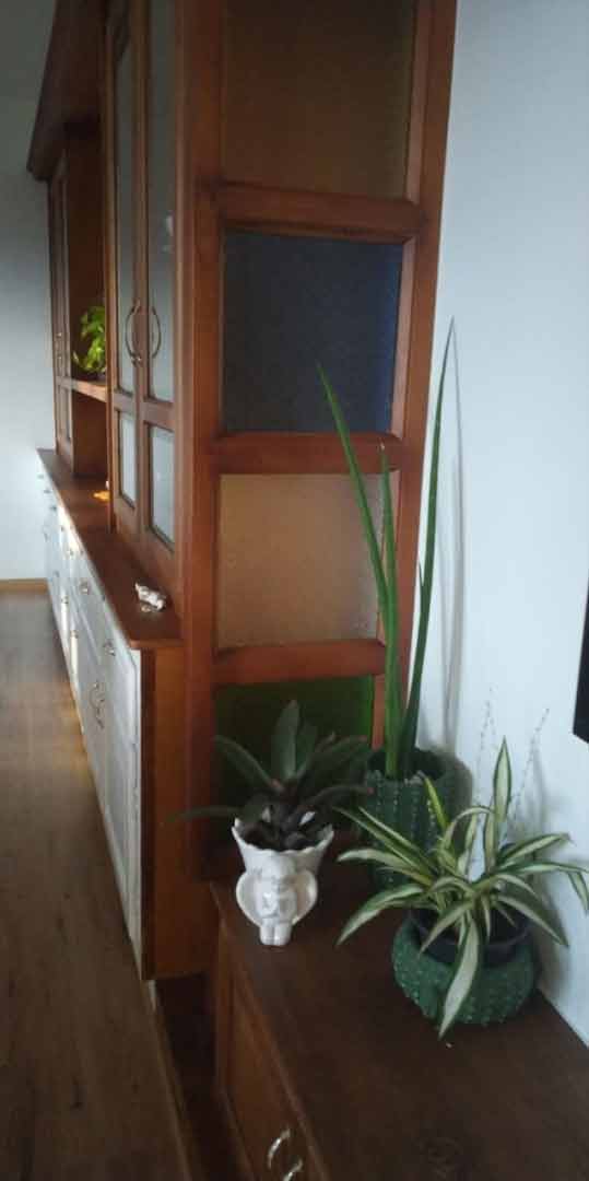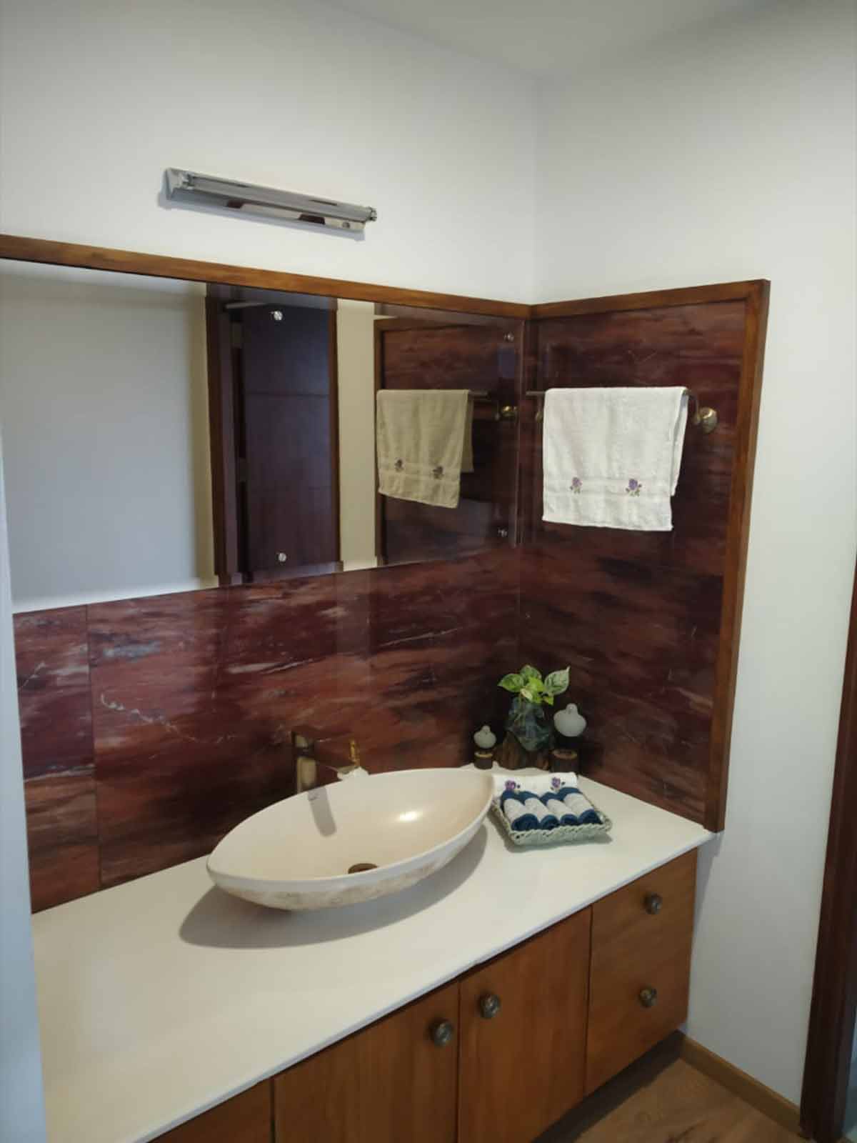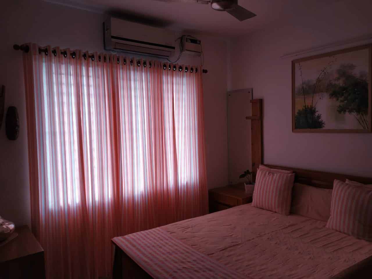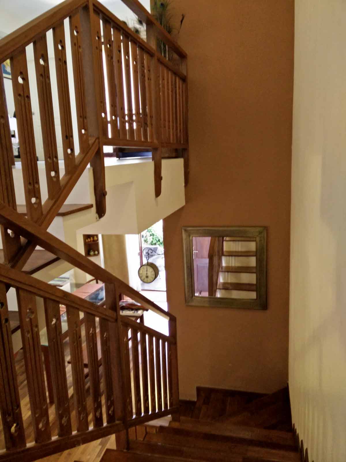 Fine finishes embellish the entire Duplex apartment for a Doctor and Dancer couple. A palette of traditional colours: green, orange, gentle beige and rich teak wood with terracotta was chosen. Deeply conscious of the Bodhi principle, the enlightenment of Buddha has been captured in terracotta and serves as one of the focal points of the design. Fabrics for the drapes, furniture and accessories selected were all textured, including luxurious blinds, smooth cotton and delicate silks. The Kitchen in green takes one’s breath away. The furniture except for the recliners has been locally crafted and provides an earthy feel.