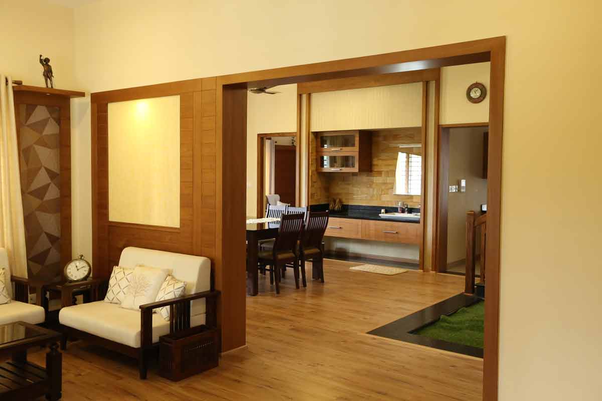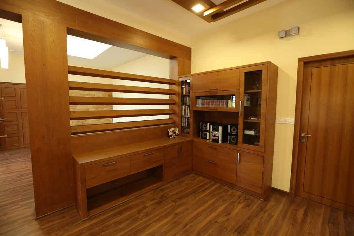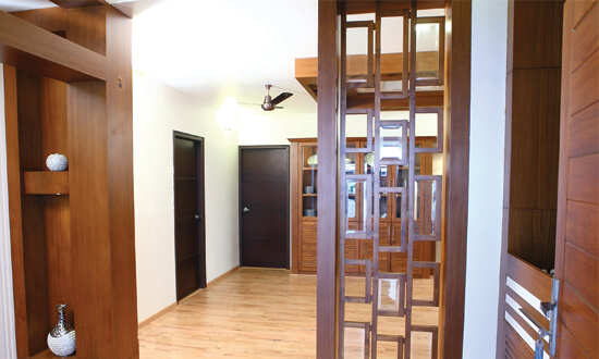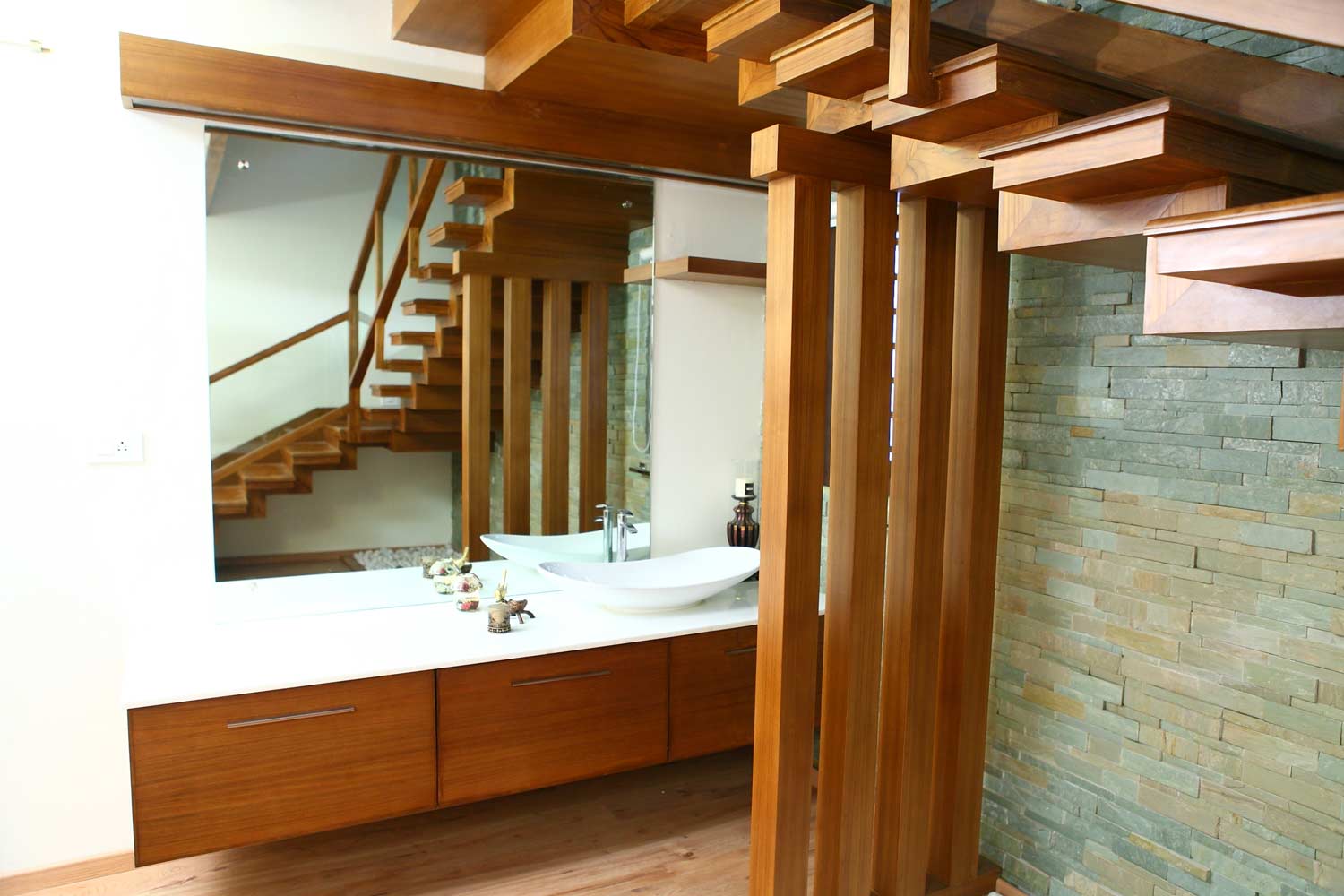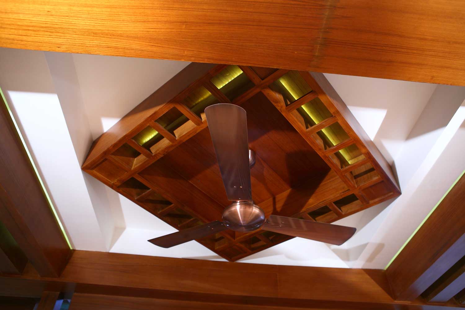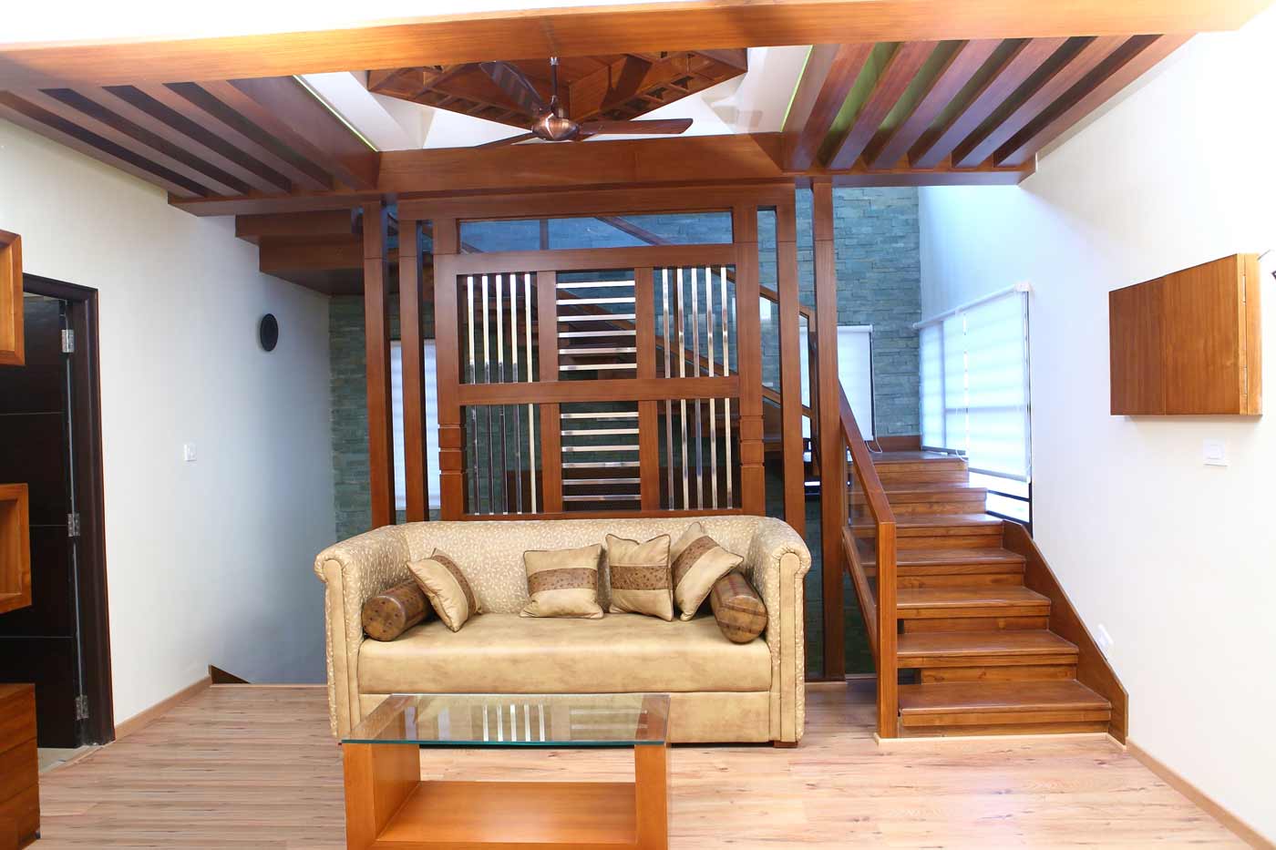 The design was an attempt to create an intelligent distribution of space with the aim of having a comfortable, intimate interior atmosphere for a family of chartered accountants. Natural teak wood finish liked by all in the family was the main feature element. Other materials were introduced to ensure layers of textures, materials, and colours to compliment the home.