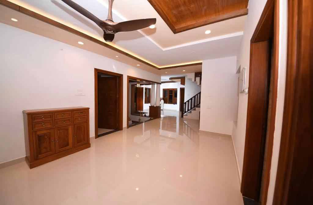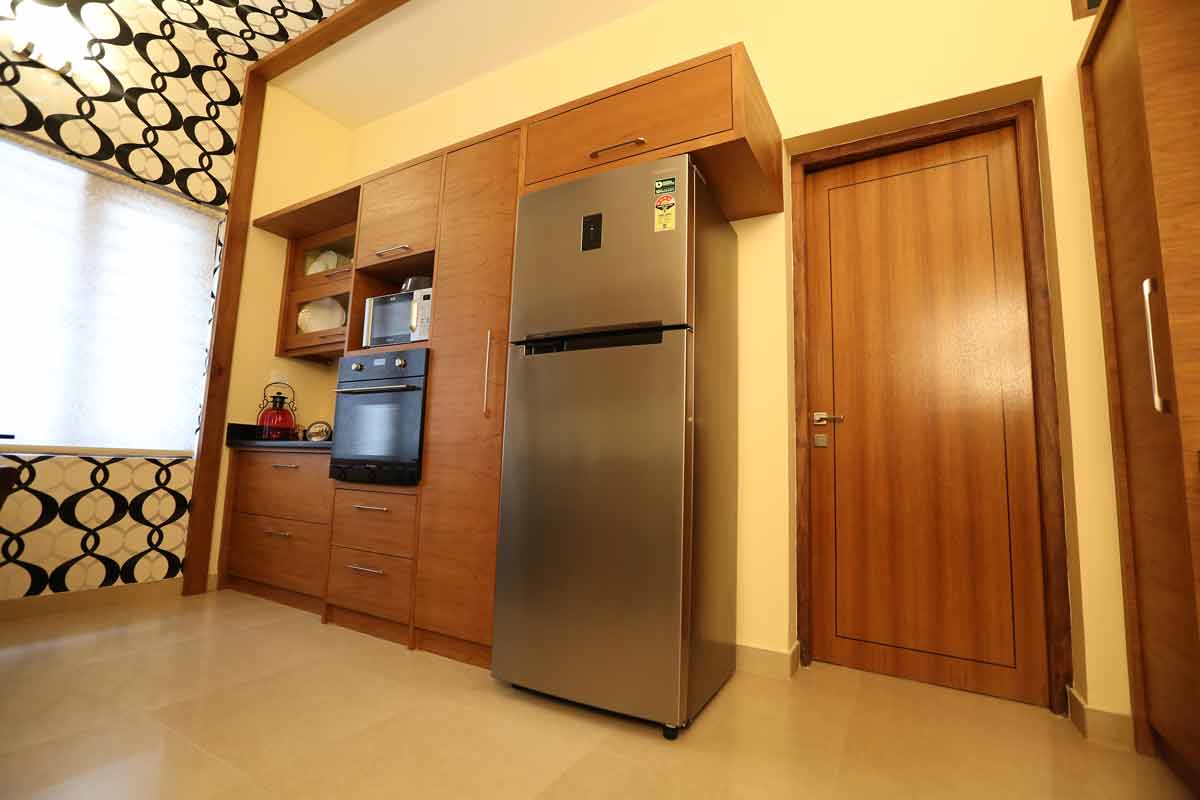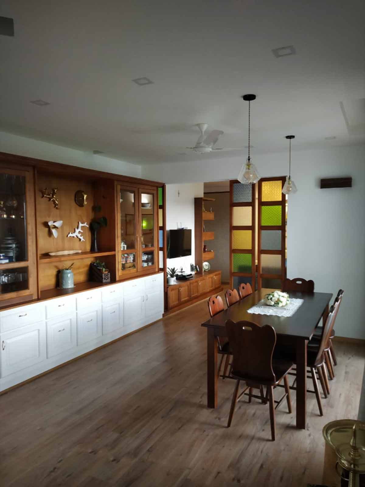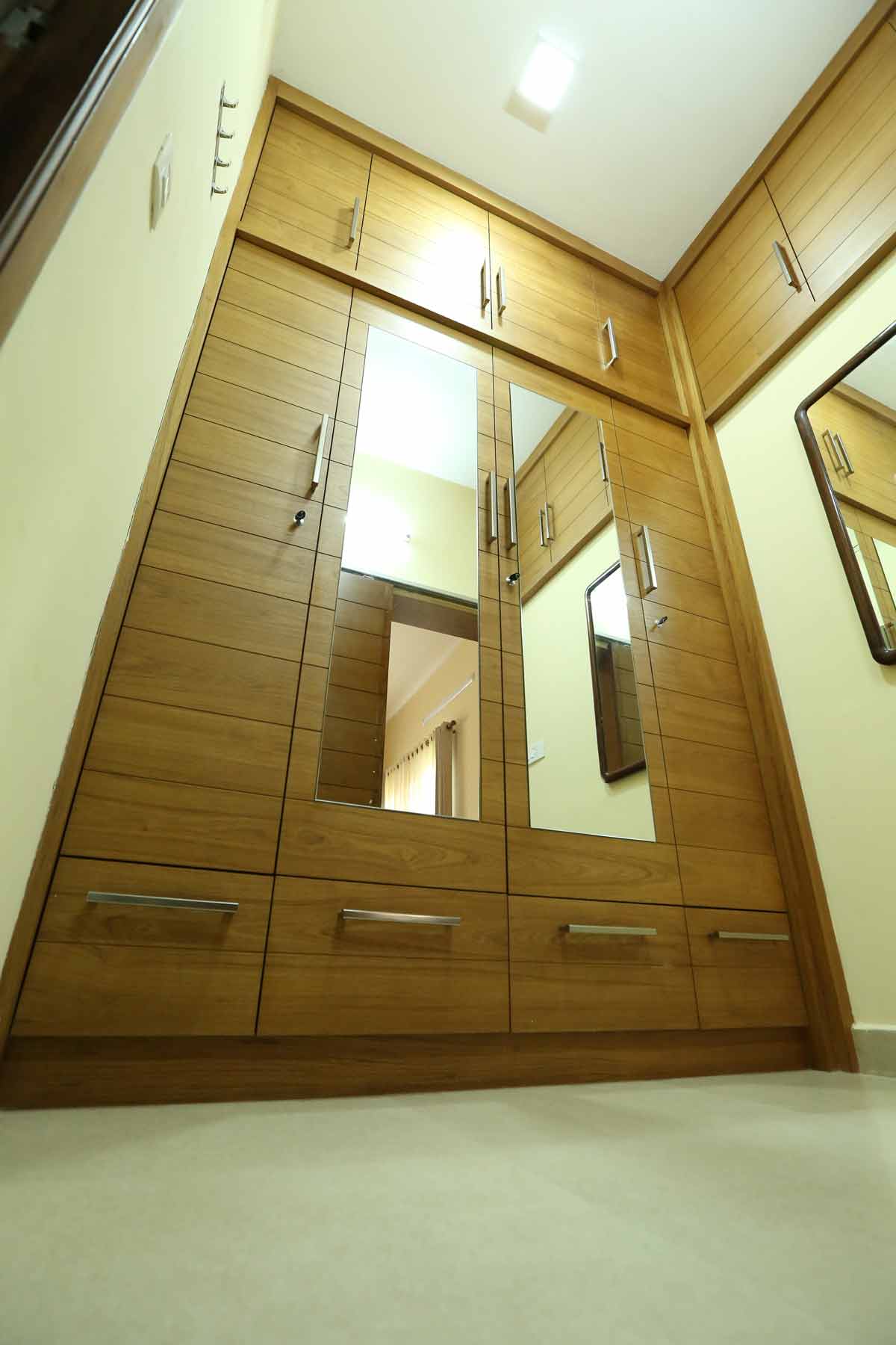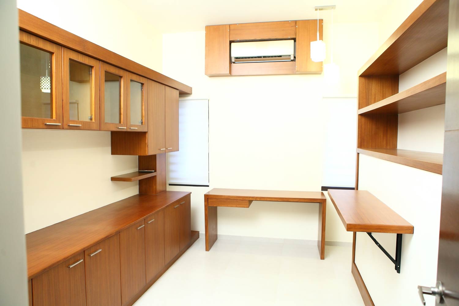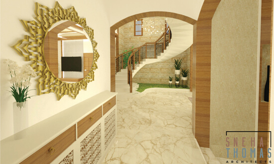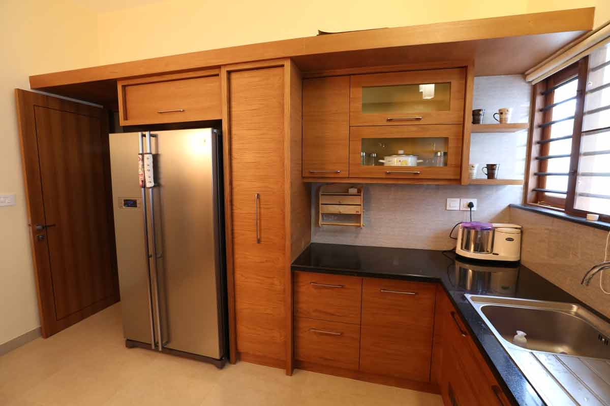 The design was an attempt to create an intelligent distribution of space with the aim of having a comfortable, intimate interior atmosphere for a family of chartered accountants. Natural teak wood finish liked by all in the family was the main feature element. Other materials were introduced to ensure layers of textures, materials, and colours to compliment the home.