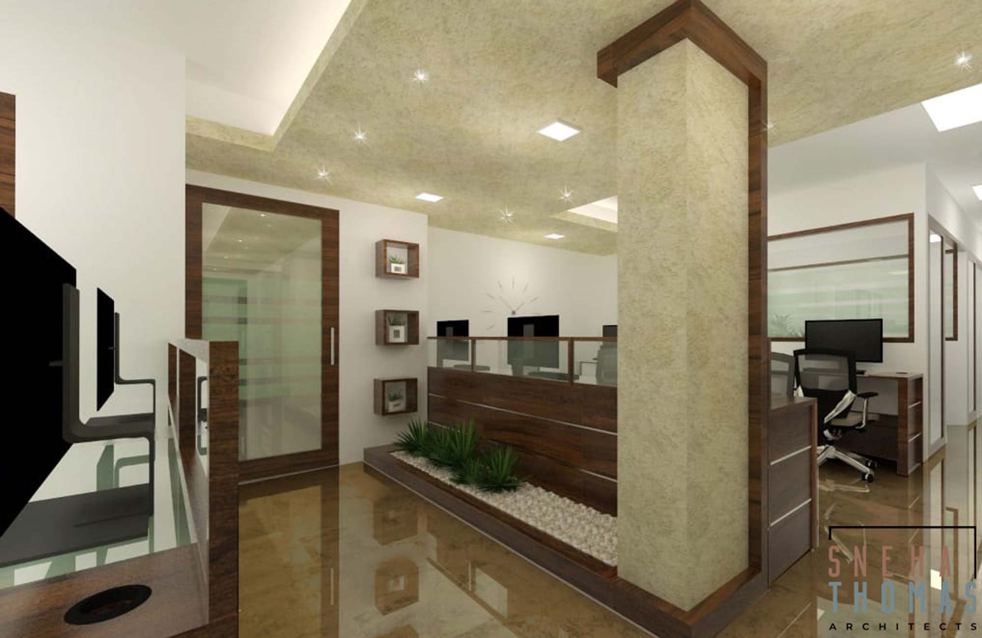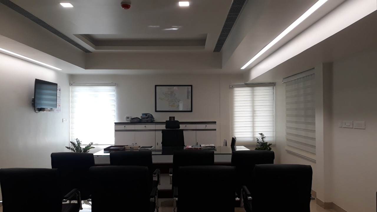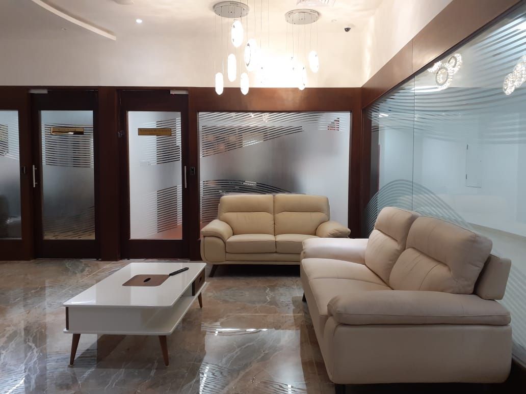 The interiors of the Corporate Office of the Comprehensive Digital Studio owned by the three brothers aptly coined WE BROS was a challenging design with varying but specific attributions pertaining to the Digitial Studio. The lobby makes use of vivid material contrasts, creating a dynamic interior. The finishes on the walls and floors combined with paths of lighting integrated into the ceilings and walls, flow throughout public spaces, and main lines of circulation. The bold contrasts illuminate the area. The interiors are comprised of Three Director’s Rooms, Meeting Rooms, Conference room, Music Recording Studio, Motion Graphics Room, Creative Department, Animation Department, Recreation Space, and Service Areas. The Reception desk was done in a visually striking design with a prominent feature rear wall. The decor of the Director’s Office was of an elegant teak wood splendour. The open-plan working environment with soothing colours of white and spring green was designed to attract young new talent and provide a motivational and creative atmosphere. We worked on lighting design, paying close attention to detailing and flow of light, an important aspect in the interior design.