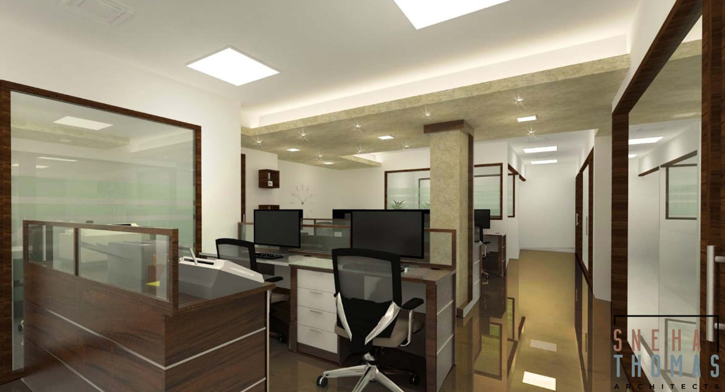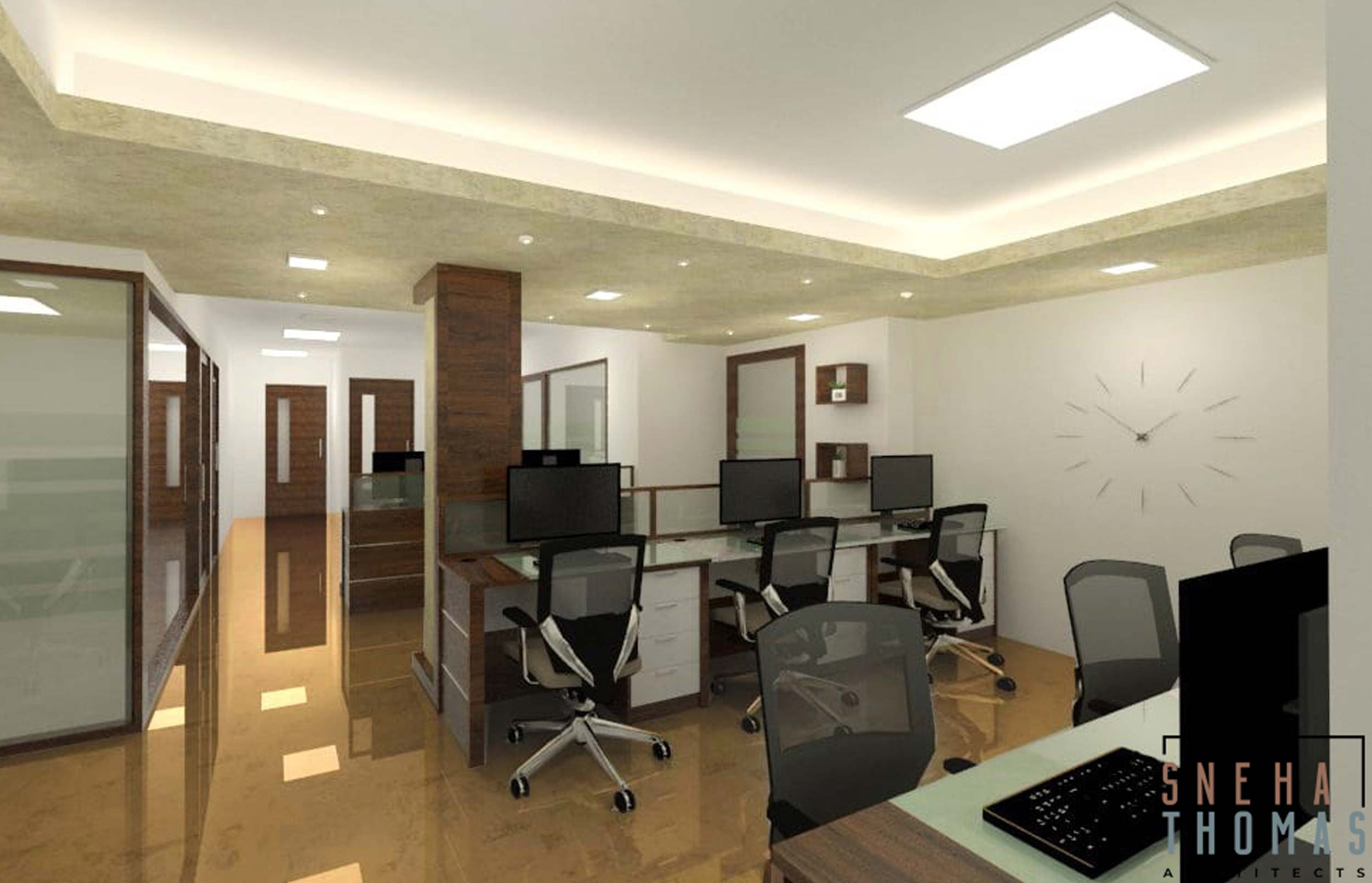 The core design challenge for the team was to meet the needs of the client within the compact floor plan. With limited access to natural light, the materials and colour palette was selected to ensure lighting. A calm and neutral aesthetic concept with the warm woods as the feature element in the Reception and Director’s Cabin was done. The work stations and Cabins were placed as per the job orientation.